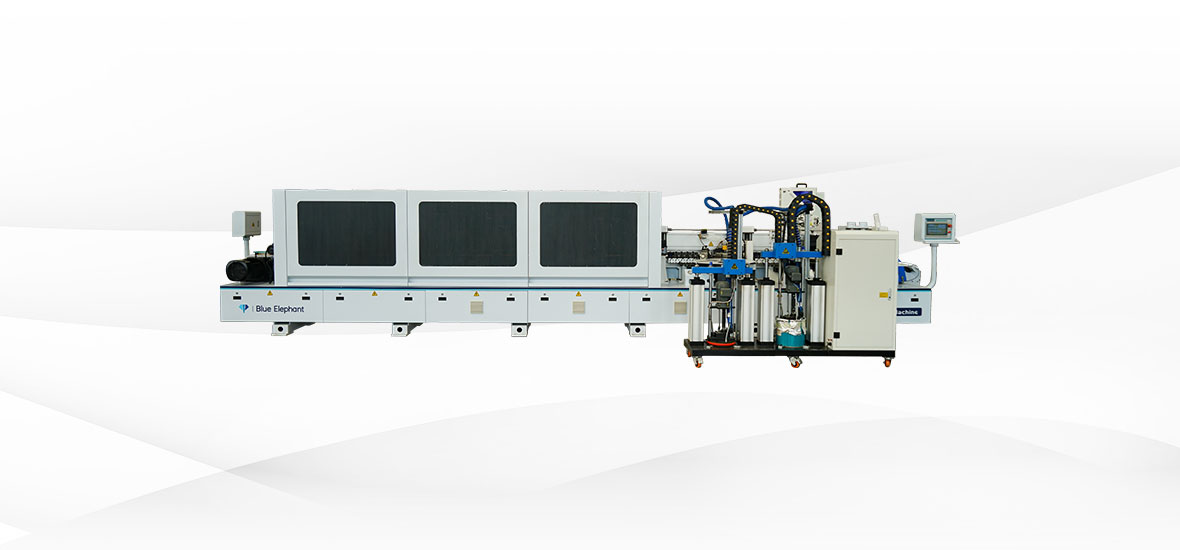 E-70JDSR全自動(dòng)封邊機(jī)功能:前分離-預(yù)銑-涂膠貼邊1-涂膠貼邊2-齊頭-手動(dòng)粗修-手動(dòng)精修-跟蹤倒角-刮邊-平刮-后清洗-拋光1-拋光2